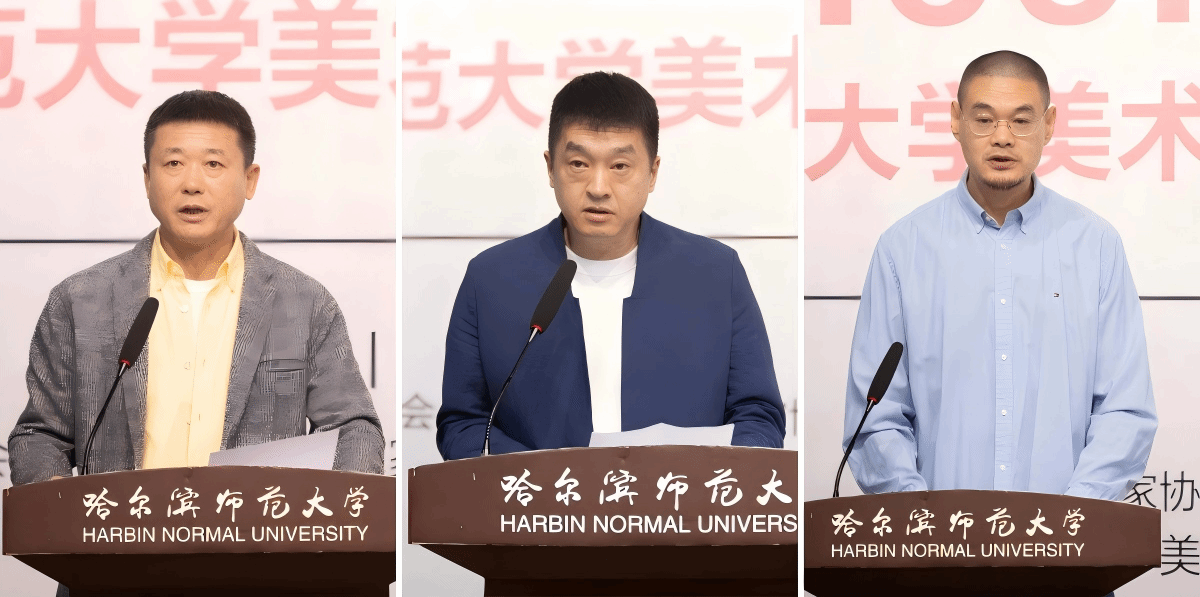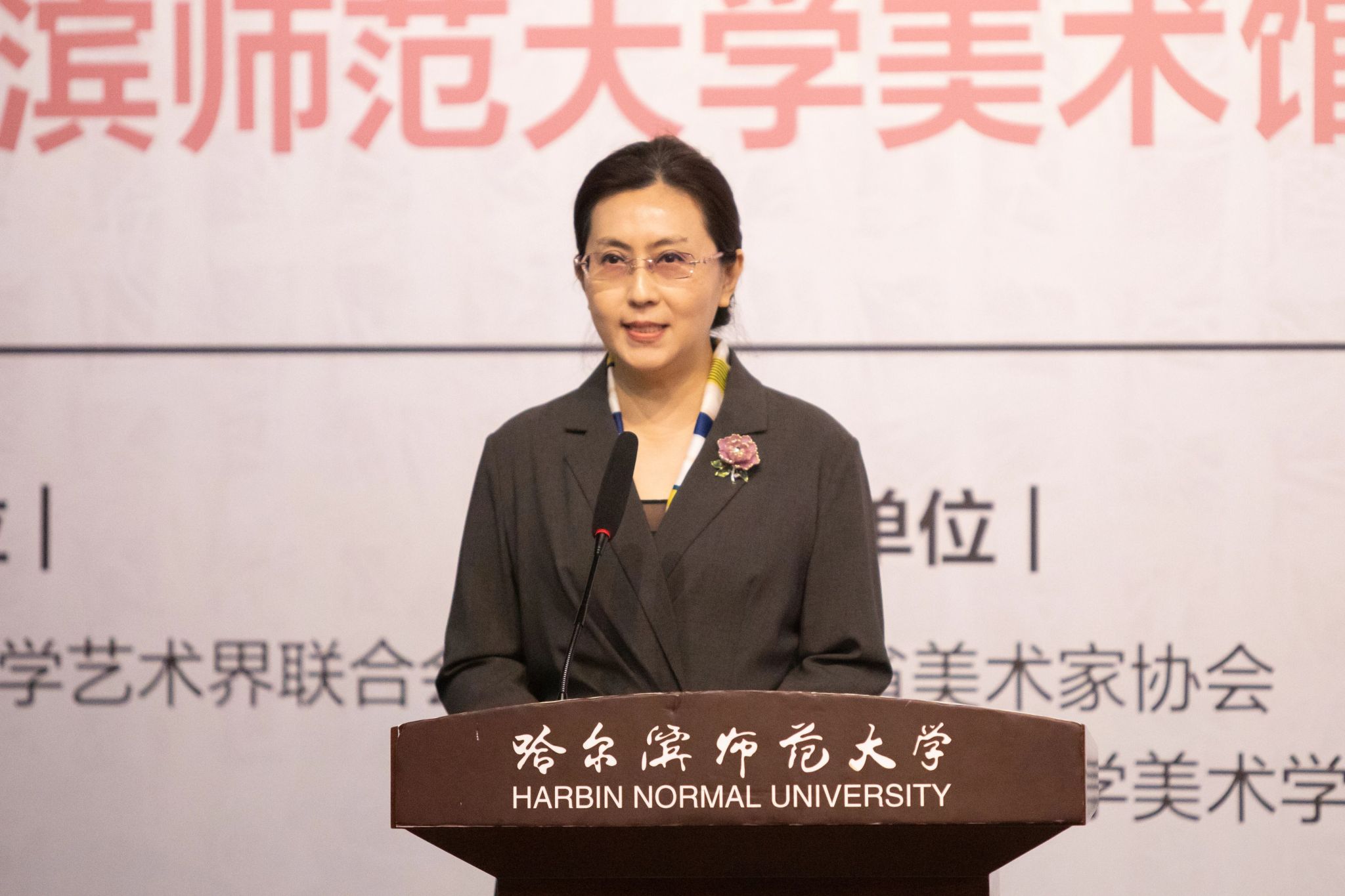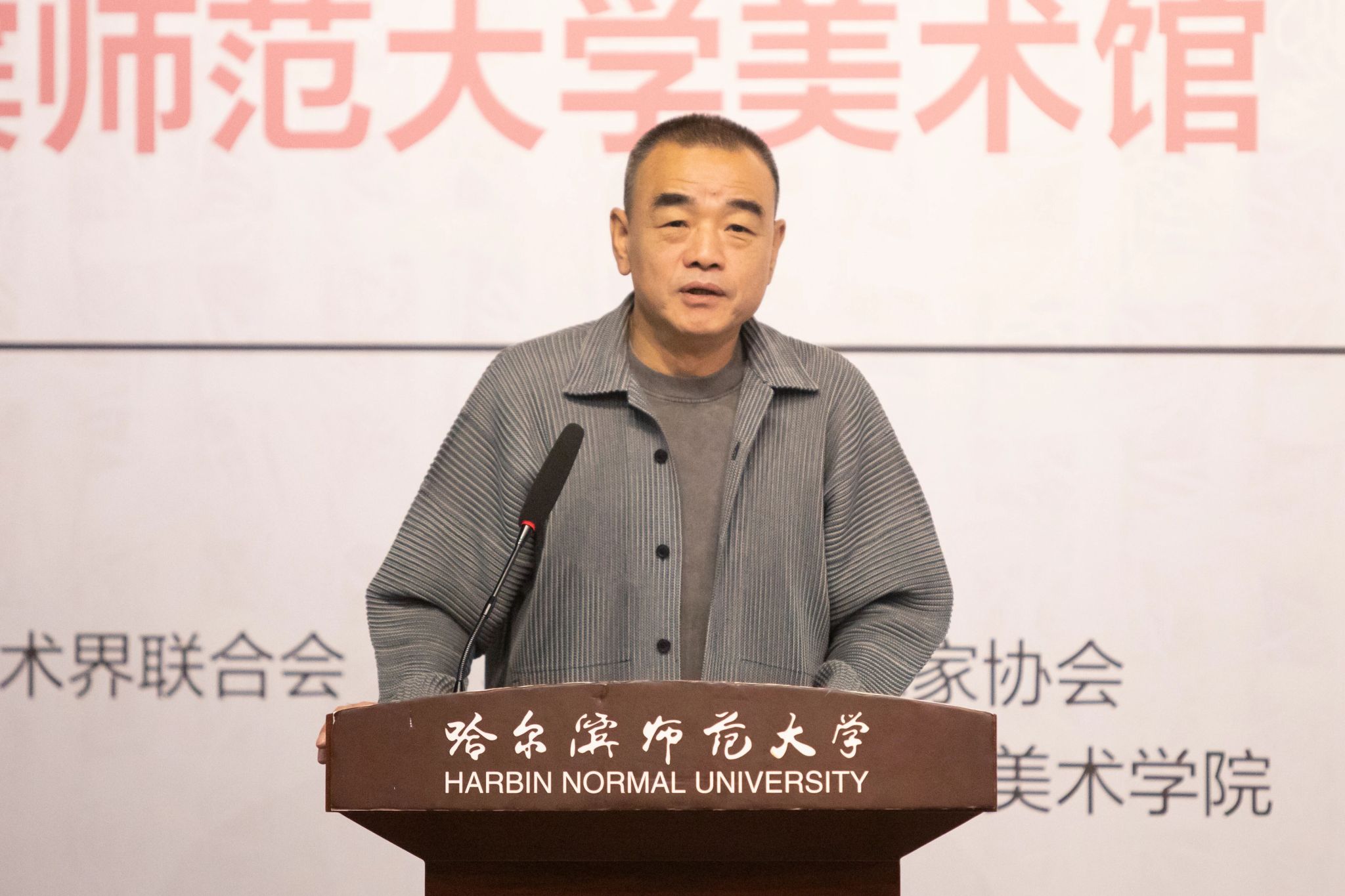 我校党委书记孙立军,中国美术家协会水彩画艺术委员会主任、黑龙江省文学艺术界联合会副主席、黑龙江省美术家协会主席赵云龙先后为展览开幕致辞。黑龙江省文学艺术界联合会党组副书记、副主席杨柏婷宣布展览开幕。