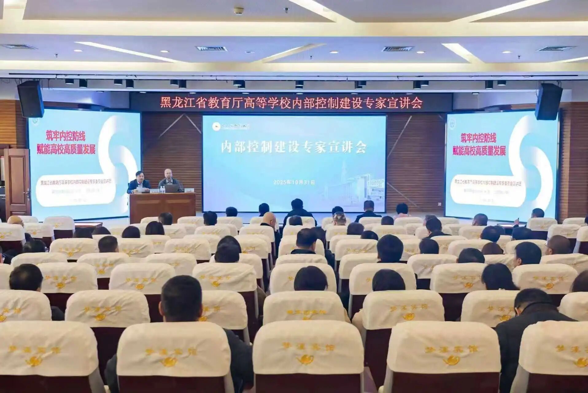 为深入贯彻落实财政部、教育部《关于进一步加强高等学校内部控制建设的指导意见》(财会〔2024〕16号),按照《黑龙江省教育厅关于开展第二批高等学校内部控制建设宣讲工作的通知》要求,切实推动我校内部控制体系建设,提升内部治理水平和风险防控能力,10月31日下午,省教育厅高等学校内部控制专家咨询委员会成员、“高校内部控制建设专家宣讲团”专家、黑河学院审计处处长孙磊来我校开展内部控制建设宣讲会。学校党政领导班子成员、全体中层干部参加会议。会议由党委常委、副校长尹剑锋主持。