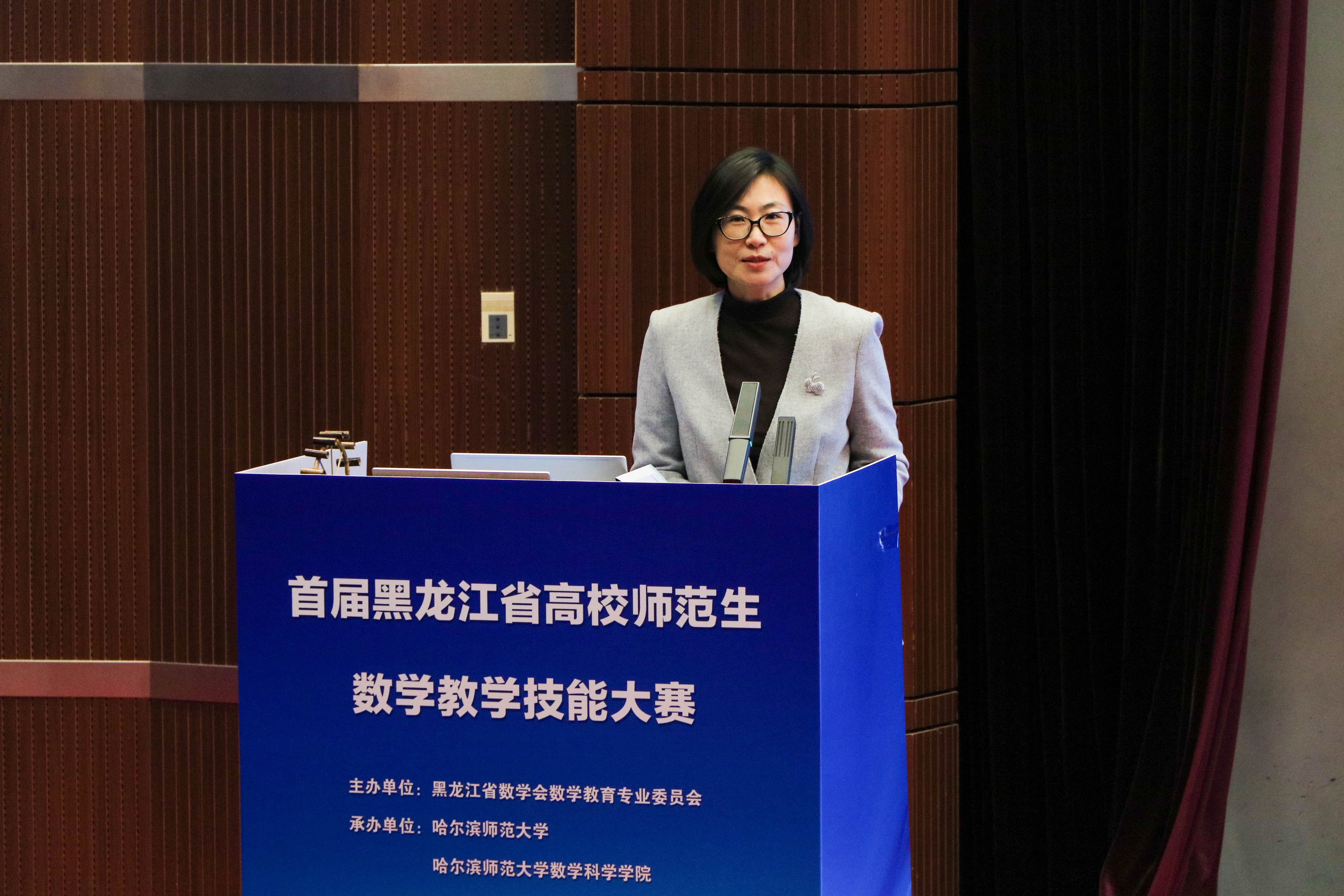 为锤炼高校师范生数学教学基本功,搭建师范人才展示交流与能力提升的优质平台,进一步夯实黑龙江省基础教育师资储备、推动数学教育事业高质量发展,10月31日至11月1日,首届黑龙江省高校师范生数学教学技能大赛在我校顺利举行。国家普通高中数学课程标准修订组组长、义务教育数学课程标准修订组组长、原东北师范大学校长史宁中教授,黑龙江省数学会理事长薛小平教授,我校校长蒋鲲教授出席活动并讲话。黑龙江省数学会副理事长王玉文教授、我校教务处处长姜洪泉教授,以及大赛评委会专家和来自全省8所师范类院校的领导、老师,基础教育领域各学段的数学教师,各地市教研员,各院校参赛学生和我校数学科学学院师生代表500余人参与了本次活动。本次大赛开幕式由数学科学学院副院长王涛教授主持。