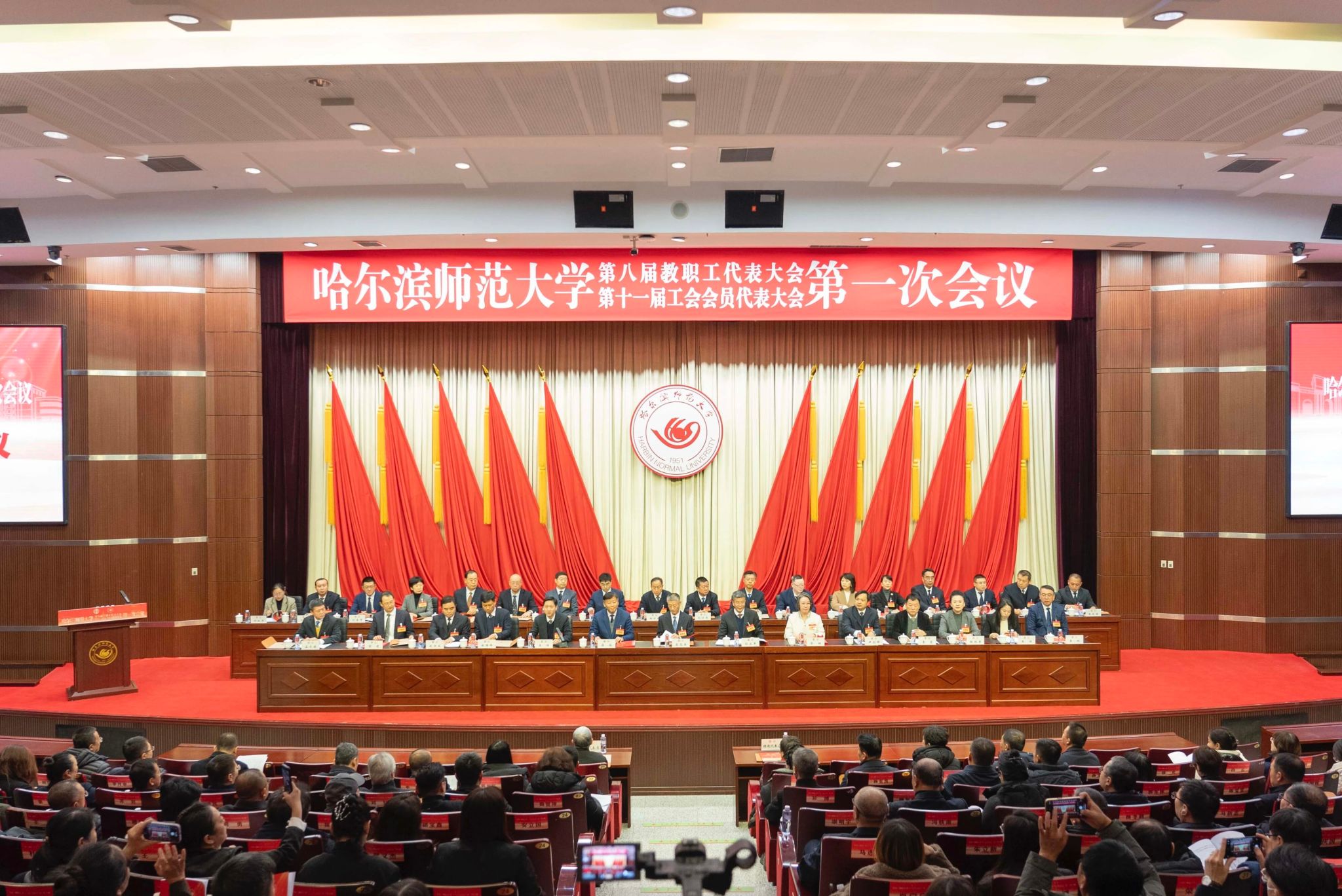 黑龙江省总工会党组成员、省科教文卫体工会主席吕光英应邀出席开幕式。校党委书记孙立军、校长蒋鲲等大会主席团成员在主席台就座。来自学校各单位的235名教职工代表齐聚一堂,参会履职,共商学校发展大计。会议邀请学校离退休老领导、老同志代表,挂职干部,二级教授、各级人大代表,各级政协委员、民主党派和无党派人士,非代表的现职正、副处级干部以及本硕博学生代表列席开幕式。开幕式由校党委副书记王辉主持。