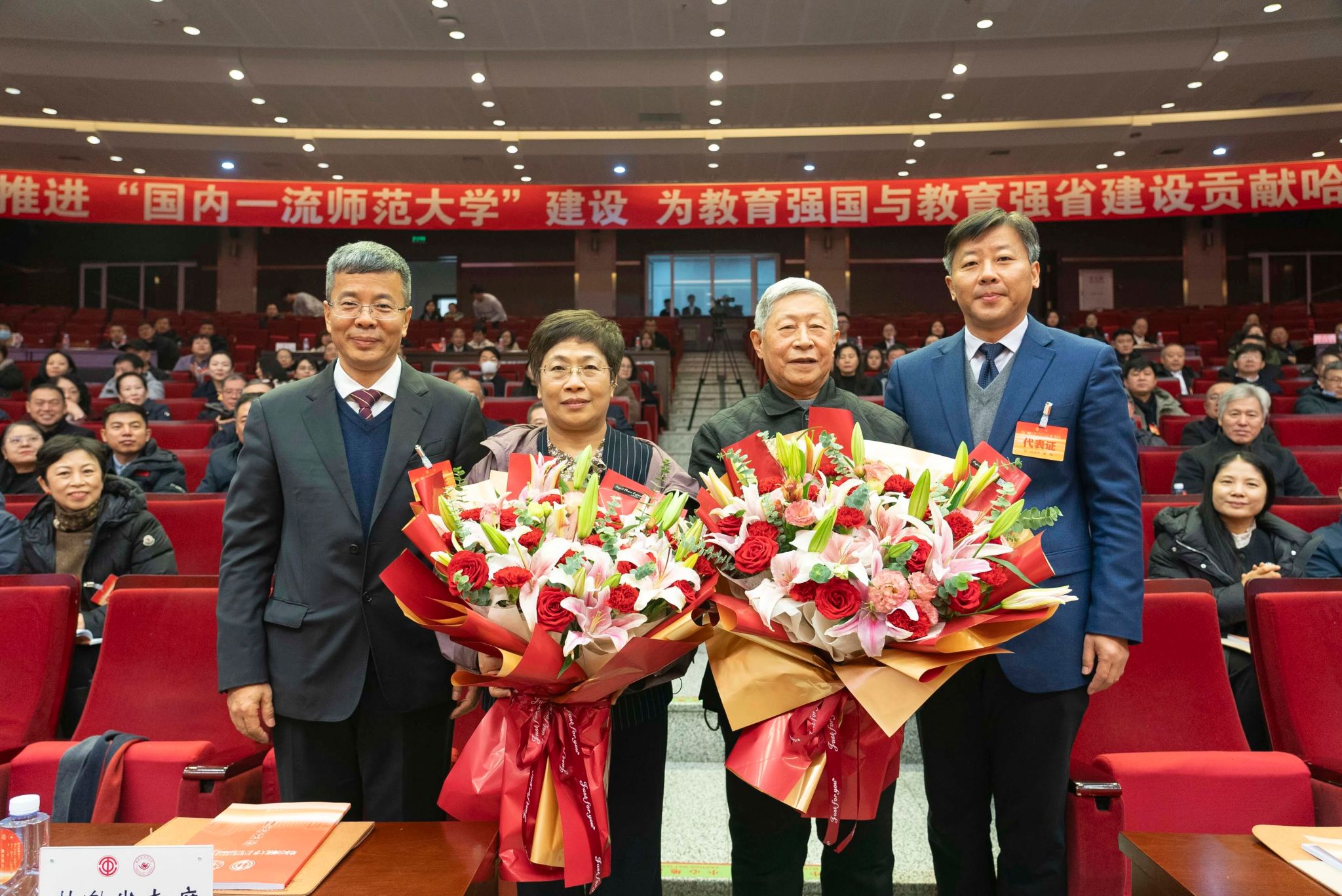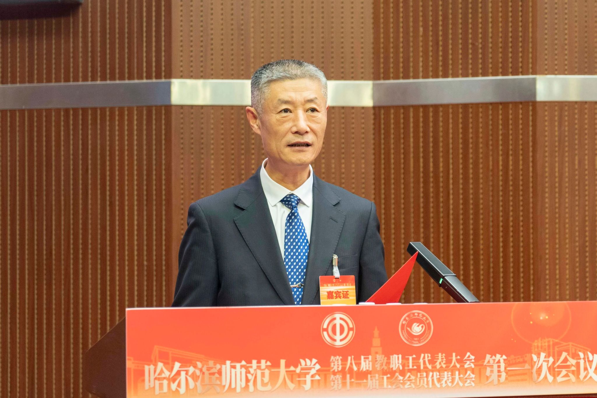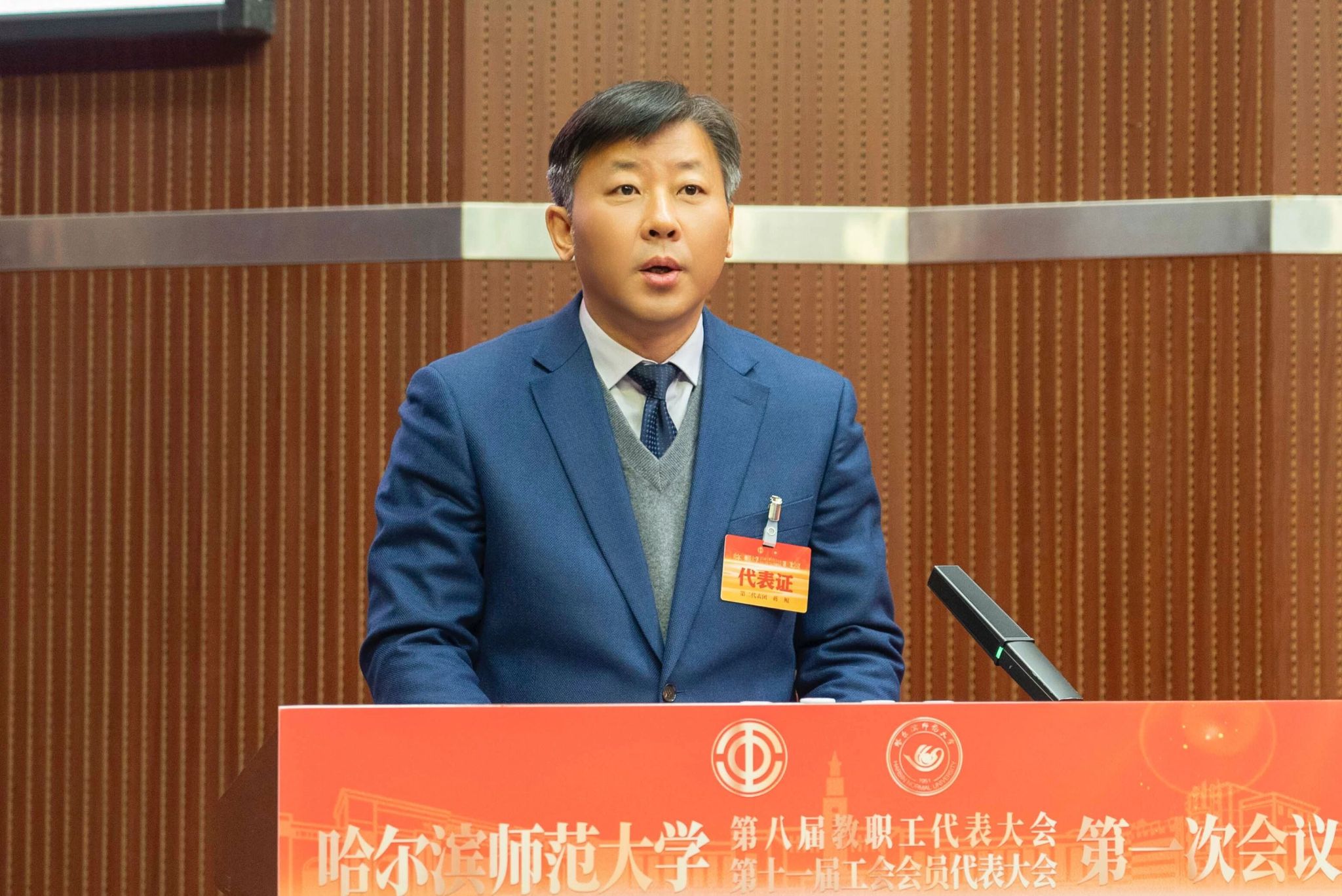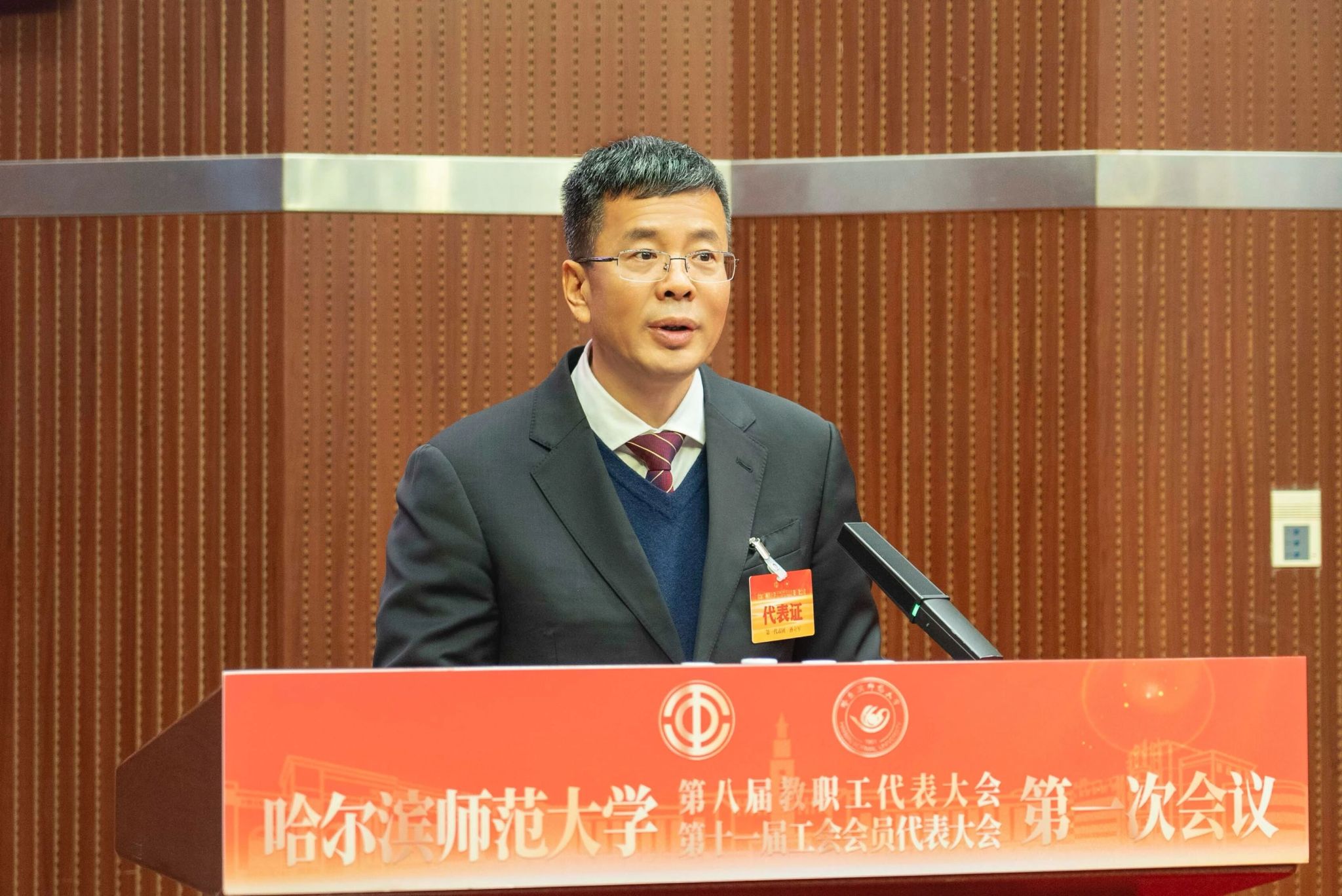 蒋鲲作题为《加快推进“国内一流师范大学”建设 为教育强国与教育强省建设贡献哈师大力量》的工作报告。