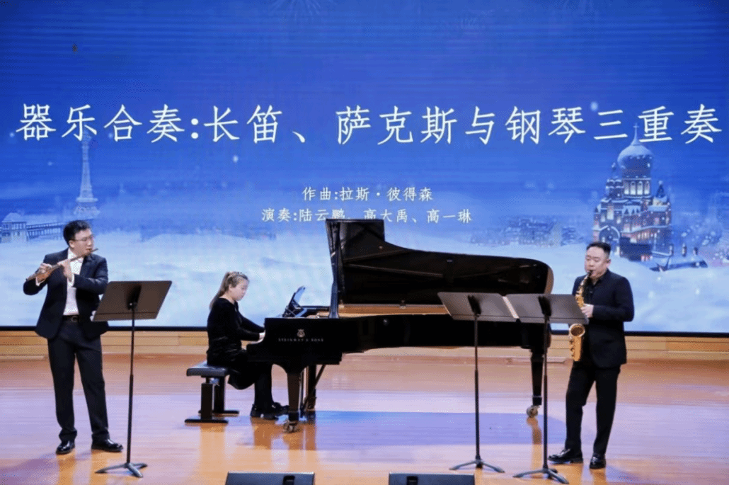 交流期间,我校师生展演了古筝重奏《嘎仙洞·梦幻》、表演唱《假如今天你还在》、小提琴独奏《查尔达什舞曲》、男声独唱《斗牛士之歌》、器乐重奏《降E大调单簧管与弦乐四重奏》、合唱《青春》、二胡独奏《阳光照耀着塔什库尔干》、女声独唱《绣荷包的俏妹子》、竹笛独奏《梦家园》、器乐独奏《萨里哈之歌》、男声独唱《不答应也得答应》、器乐合奏《长笛、萨克斯与钢琴三重奏》共12个节目,将学术研讨与艺术展示有机融合,展现了哈尔滨师范大学音乐学院的学科特色与育人实践成果。