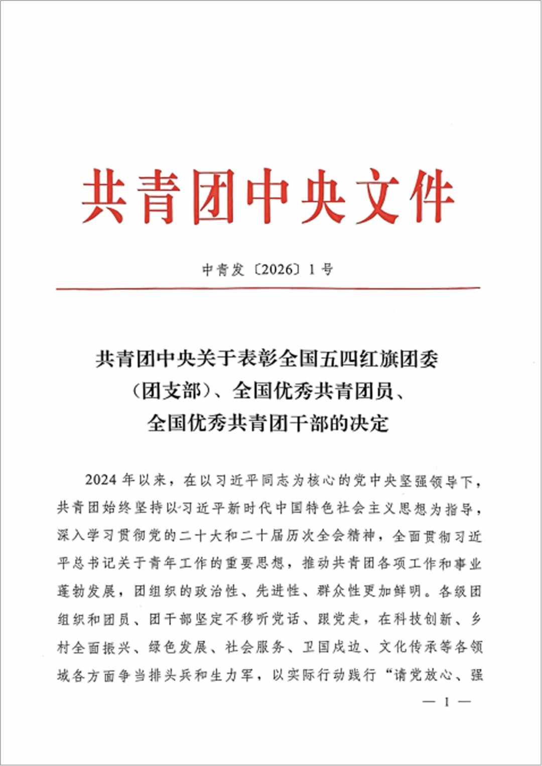近日,共青团中央下发了《共青团中央关于表彰全国五四红旗团委(团支部)、全国优秀共青团员、全国优秀共青团干部的决定》(中青发〔2026〕1号),我校团委获评“全国五四红旗团委”荣誉称号。此次获奖是我校团委时隔20年第二次荣获团内最高荣誉。