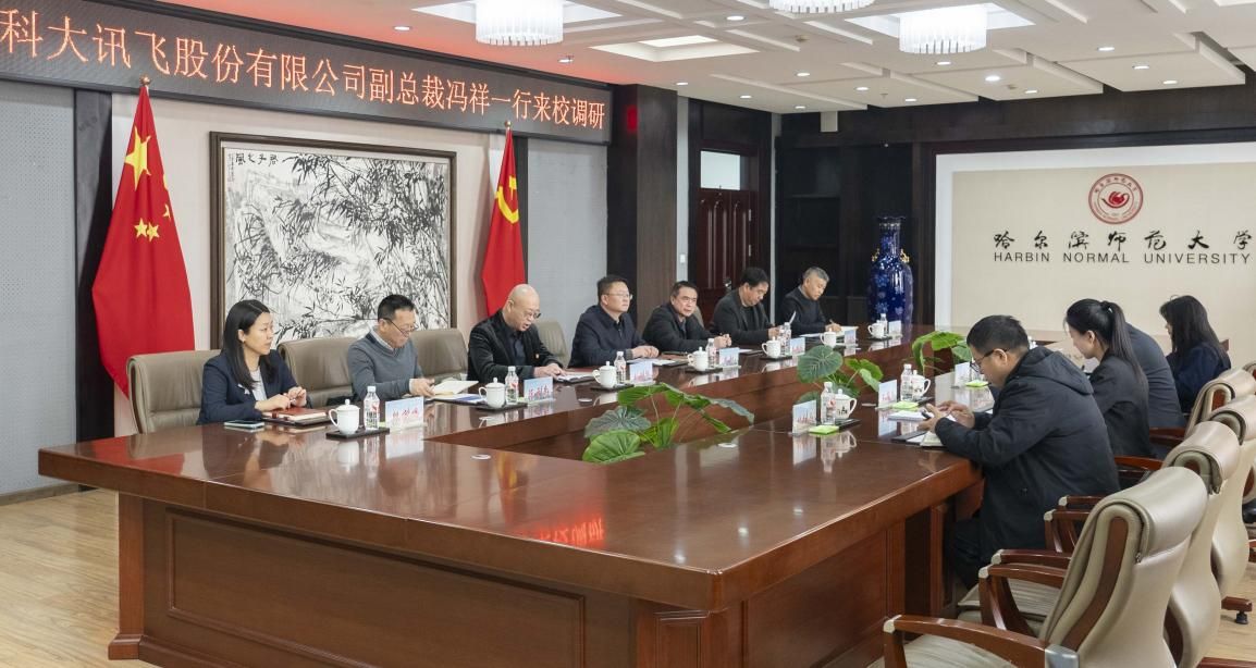 李林对科大讯飞调研组一行的到来表示热烈欢迎,并简要介绍了学校的历史沿革、办学特色及发展建设成就,着重介绍了学校在人工智能教育领域的工作进展及成效。冯祥分享了科大讯飞在人工智能领域的技术积累与教育行业实践。教育科学学院院长陈云奔介绍了教育科学学院在学科建设、人才培养、科研创新等方面的发展成果。与会人员就双方互利合作事宜进行讨论,形成了“校企”共建的清晰路径,为推进人工智能与教育深度融合奠定了坚实基础。