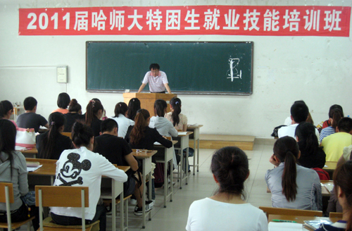 由哈尔滨市人力资源与社会保障局与我校学生就业指导处职业技能养成培训中心合作举办的哈尔滨师范大学特困毕业生职业技能培训班6月8日正式开班,免费为我校2011届师范特困毕业生进行职业技能培训,为期13天至6月20日结束。