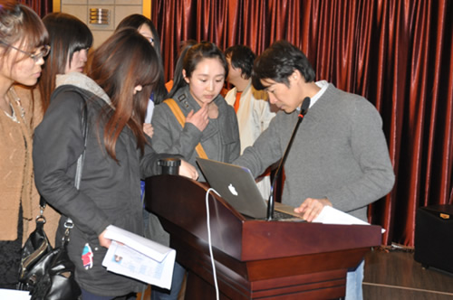 “中视(北京)影视制作公司”是中国国际电视总公司与中央电视台合资控股的著名影视公司,曾经先后推出《炊事班的故事》、《大宋提刑官》等40余部1000余集题材多样的电视剧。此次招聘活动得到了广大师生的热烈响应。招聘会上,同学们拿着自己的作品与中视影视制作公司的工作人员进行了专业讨论与磋商,深入了解了动画专业的就业前景和市场需求。