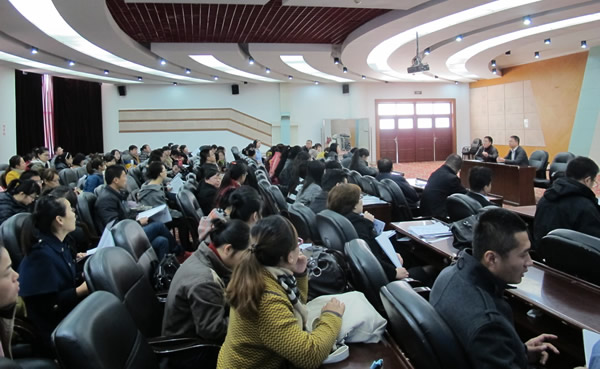 招聘会前,学生就业指导处举办了简短的欢迎仪式和招聘说明会。会上,学生就业指导处处长张旭东致欢迎词,无锡市惠山区教育局局长刘俊伟介绍了无锡市惠山区的教育发展情况,无锡市惠山区教育局党委委员、纪委副书记、组织人事科科长介绍了此次招聘的流程和要求。无锡市惠山区自2007年同我校学生就业指导处建立了用人关系以来,始终保持着长期友好合作关系,学校主管就业工作的党政领导也多次到无锡教育局对我校毕业生工作进行回访。此次招聘会期间,研究生学院党委书记周百斌同用人单位就我校研究生就业工作积极交换了意见。此次招聘活动仅在华东师大、东北师大和我校进行,为我校毕业生创造了良好的就业机会。