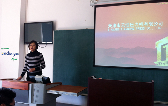 (杨春萍/文) 11月7日上午,斯拉夫语学院在社科楼1003举办天津天段压力机有限公司俄语专业专场招聘会。天津市天锻压力机有限公司是国内最大的液压机研发、制造企业。企业销售收入、经济增速、科技投入连年位居全国液压机制造业第一。