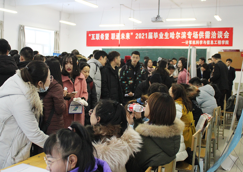 为深入贯彻落实《哈尔滨师范大学2021届毕业生“全员就业四大行动”工作方案》精神,切实做好2021届毕业生就业工作,进一步提高2021届毕业生就业质量,11月27日下午,计算机科学与信息工程学院在理工一号117教室举办了“互联希望、职通未来”2021届毕业生哈尔滨专场供需洽谈会。