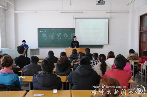 首先,校报记者团李晨同学全面细致地讲解了新闻采访与编辑写作知识。她从最基础的新闻标题和导语讲起,再到新闻写作的具体注意事项,总结了在新闻写作中大家常犯的一些错误以及避免类似错误的一些方法。缜密的思维、生动的讲解使现场掌声不断。随后,网络信息工作室李鑫同学向大家讲解了网络新闻的采访与编辑写作技巧,并重点强调了网络新闻与报纸新闻在编辑、写作等方面的不同。最后,灯丝摄影协会赵胜男同学从摄影的角度选择、图片结构、光线感应等方面给大家讲解了一些摄影技巧。她富有激情的讲解和风趣幽默的语言让大家在轻松愉悦的氛围中学到了摄影方面的知识。