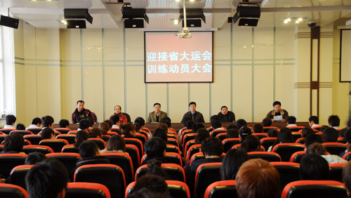 4月9日下午,体育科学学院召开了迎接黑龙江省第十五届大学生运动会训练动员大会,全体教练员和运动员参加了大会。
