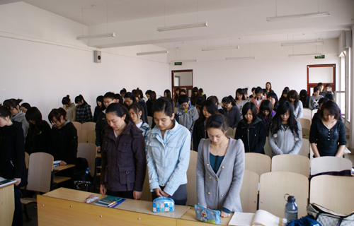 哀悼仪式上,广大师生向在玉树地震中不幸遇难的同胞默哀。默哀仪式结束后,王选章号召广大师生,特别是党员领导干部立即行动起来,积极向灾区人民奉献爱心,以实际行动谱写中华民族“一方有难、八方支援”的传统美德,帮助灾区人民早日战胜灾难,重建家园。