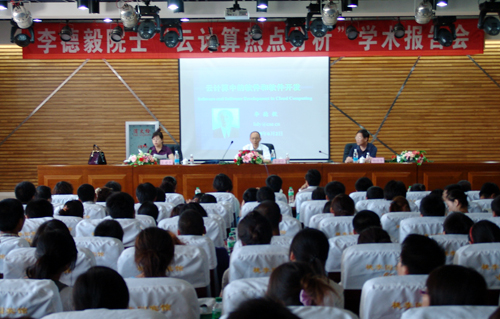 报告中,李德毅院士讲述了导致云计算的大背景、云计算的标准、云计算导致软件产业重组、物联网以及云安全等诸多学术前沿问题。总结时李院士讲,“软件作为独立产品,针对客户需求,采用自顶向下、逐步求精的方法,进行面向系统的软件设计与面向底层技术实现的代码开发与测试,让客户安装并拥有软件系统,这样的时代已经成为历史。”“云计算平台促进了软件开发商之间的资源聚合、信息共享与协调工作,形成面向服务的计算,为网络时代的软件工程开辟新的道路。”其报告为与会师生开启了更广阔的学术天地,激发了师生更大的学术热情与兴趣,也将给学院学科建设带来新的启迪与探索。
