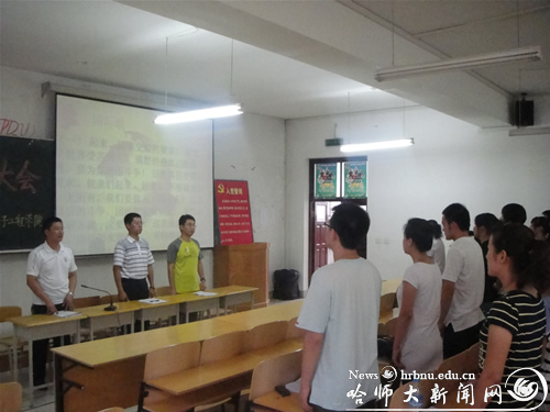 7月1日,在伟大的中国共产党建党89周年之际,物理与电子工程学院党委在理化楼113教室召开了新党员入党宣誓大会,院党委书记杨世君、党委副书记刘海龙出席了本次宣誓大会。部分党员代表,积极分子代表和群众代表参加了大会。
