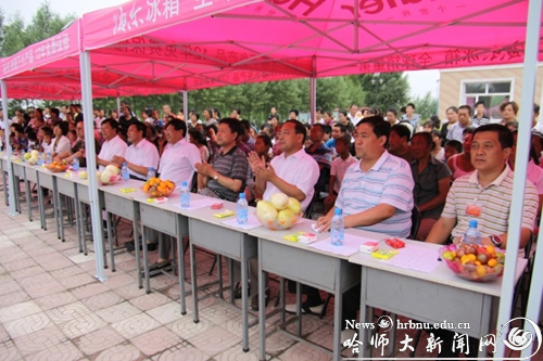 7月18日上午11时左右,实践服务团顺利抵达安达市青肯泡乡农义村,开始了为期四天的“服务新农村 建设新家园”社会实践活动。四天里,服务团先后参观了青肯泡乡奶牛养殖基地和农义村绿色蔬菜园区,加深了对当地基本情况的了解。实践团成员和乡篮球队进行了别开生面的友谊赛,并在村休闲广场开展了普法宣传活动,在村中心小学进行了支教活动,与老乡们结下了深厚的感情。实践团的指导老师还为乡村两级干部作了以“改革开放三十年”为主题的报告,场面活跃,反响热烈。