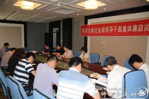 9月6日上午,学校纪委、组织部、监察处联合召开了新任处级领导干部集体廉政谈话会议,32名新任处级领导干部参加了会议。