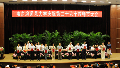 会议宣读了哈尔滨师范大学关于表彰2010年国家级教学质量工程立项项目和省级教学质量工程立项项目的决定、关于表彰“校级教学名师”、“校级青年教师优秀教学奖”、“宁齐堃奖教金”、“卢禹舜奖教金”、“王振华奖教金”获奖者的决定和获奖名单。