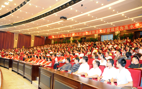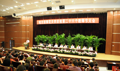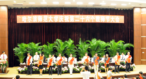 9月10日下午,我校庆祝第二十六个教师节大会在松北校区科技会堂隆重召开。学校党政领导,机关各部门和直属单位主要负责人,各分党委(党总支)书记、副书记,各学院院长、教学副院长、科研副院长、系主任,全体博士生导师,硕士生导师代表,教师代表,民主党派和团体负责人,研究生和本科生代表600余人参加了会议。会议由党委副书记王为正主持。