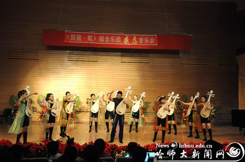 琵琶是中华民族传统的音乐艺术,有近三千年的历史,演奏时金石之声绕梁三日不绝于耳,宛如清晨的露珠润泽通透,沁人心脾,感动心灵。为了让更多的人了解琵琶、喜爱琵琶,使这一传统乐器在现今多元的时代展现新的风采,音乐学院硕士生导师姜虹教授潜心研究、深深思考,怀着对琵琶事业强烈的使命感和对艺术的不懈追求,在音乐学院博士生导师郁正民教授的启发下,借鉴了国内的一些成功范例,并结合音乐学院现有的优势,构思、策划、组建了由琵琶专业学生们构成的琵琶组合乐团——琵琶•虹。琵琶•虹组合乐团自成立以来,参加了“哈尔滨之夏”闭幕式音乐会和慰问部队等一系列演出,受到了社会各界的高度赞誉,9月1日《新晚报》给予大篇幅报道。