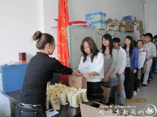 学院特困生管理委员会的学生干部为贫困生分发了老鼎丰月饼。每块月饼都饱含了学校领导、老师对贫困学子的殷切希望和美好祝福。贫困生手中拿着这沉甸甸的月饼内心感到无比温暖。他们立志要把学校、社会的关怀和温暖化为努力学习、报效祖国的动力,以良好的成绩和过硬的本领回报社会。