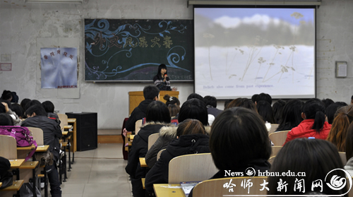 (100工作室记者郑杰/文)11月9日下午,为了丰富学生的课余生活,给学生一个展示才华的舞台,政法学院学生会学习部在政法楼501室举办了一场面向09级全体学生的外文风采大赛。学院党委副书记王彦庆观看了此次比赛并参与指导。