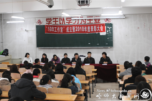 (100工作室记者刘磊/文)11月11日下午,隶属于党委宣传部的我校学生组织网络信息工作室更名“100工作室”暨2010年度总结表彰大会在教育楼329室召开。党委宣传部副部长王琰和工作室指导教师等出席了会议,工作室100余人参加了大会。