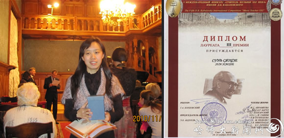 图 孙晓婕获得“第五届卡巴列夫斯基21世纪音乐教师国际比赛”三等奖
