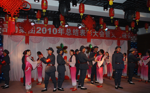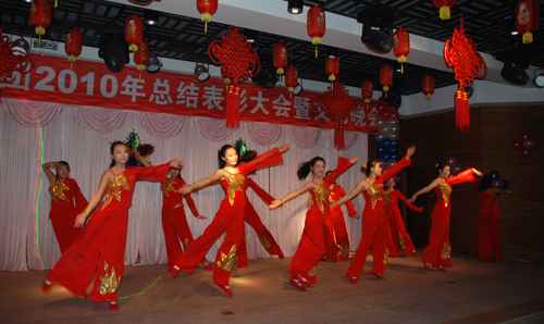 总结表彰大会结束后,精彩的文艺演出拉开了序幕。整台晚会由员工们利用业余时间自编自导自演,节目内涵丰富,精彩纷呈,既有歌舞表演,又有相声、小品表演,极具感染力,达到了一定的艺术水准,受到了领导和员工们的一致好评和热烈欢迎。