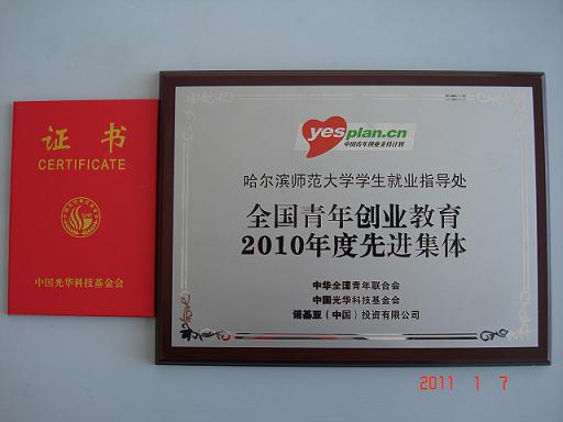 2011年1月5日,全国青年创业教育2010年度颁奖年会在北京中国科技会堂召开。此次年会旨在表彰过去一年中为我国青年创业教育做出贡献的集体、单位及个人。我校学生就业指导处、浙江理工大学招生就业处、浙江大学、哈尔滨工程大学团委等20家单位在本次年会中被中华全国青年联合会、中国光华科技基金会授予全国青年创业教育先进集体称号。