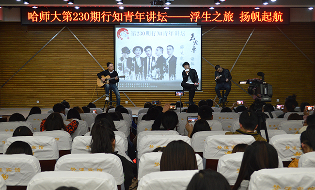(毕坤/文)10月25日,黑龙江本土乐队――丢火车乐队应邀做客我校第230期行知青年讲坛,本次讲座的主题是“浮生之旅,扬帆起航”,乐队成员与师大学子分享他们做音乐时的经历及感悟。本次活动继续采用微信索票和现场索票两种索票方式,梦溪宾馆二楼会议室座无虚席。