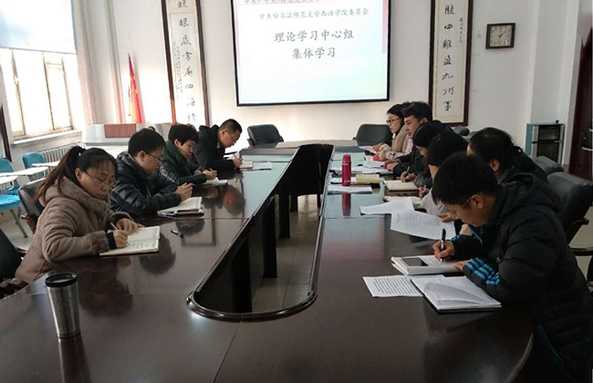 (李慧娴/文)为深入学习党的十九大精神,西语学院党委理论学习中心组于11月27日下午在西语楼211室开展集体学习活动,西语学院党委委员、副处级及以上干部、各系主任、三办主任、团委书记参加了学习活动,活动由学院党委书记李贵彬主持。