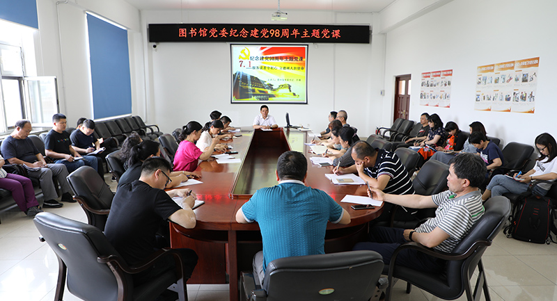 (孙儒/文)为纪念中国共产党成立98周年,引导图书馆党员不忘初心、牢记使命,坚定理想信念,增强党性修养,充分发挥基层党组织的战斗堡垒作用和党员的先锋模范作用,7月4日下午,图书馆党委书记乔峰在图书馆四楼会议室向全体党员同志讲授了主题为《服务读者守初心,立德树人担使命》的“不忘初心、牢记使命”主题教育专题党课。