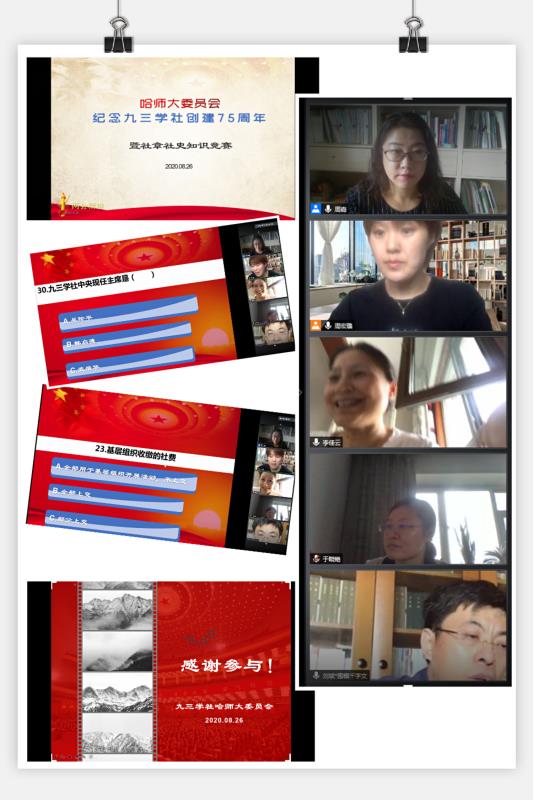 (周宏璐/文)为庆祝九三学社创建75周年,8月26日,九三学社哈师大委员会在腾讯会议平台举办了“纪念九三学社创建75周年暨社章社史知识竞赛”。
