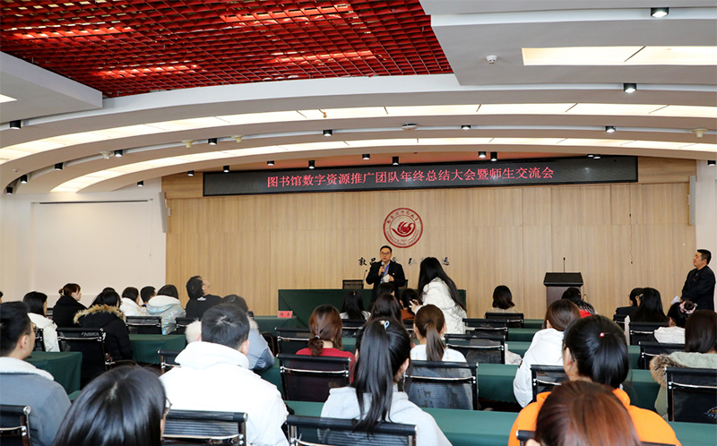 (李晓辉/文)12月2日中午,图书馆在一楼报告厅举办了数字资源推广团队年终总结大会暨师生交流对话会。图书馆馆长杨革出席活动。文学院、地理科学学院、教育科学学院学生代表参加交流会。