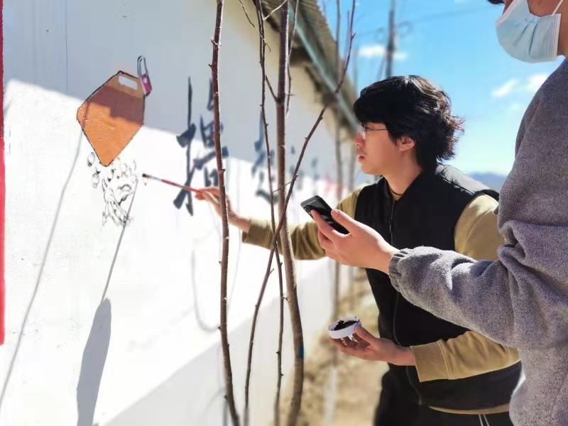 美术学院油画系壁画专业党员教师刘维维带领12名研究生、本科生党员和志愿者,23日从哈尔滨出发到达南岔县迎春乡,针对基层实际要求,为当地农村绘制4组共86平方米的彩绘墙,宣传社会主义核心价值观和美丽乡村建设。刘维维服务队是根据本次任务组建的,在接到具体任务时,服务队做了详细细致的先期准备工作,从准备文案、设计图稿到购买材料、现场绘制,服务队师生们克服了季节条件差、时间紧张、任务重等困难,加班加点,放弃休息,用24日、25日两天时间圆满完成了如此大面积的墙面彩绘工作。