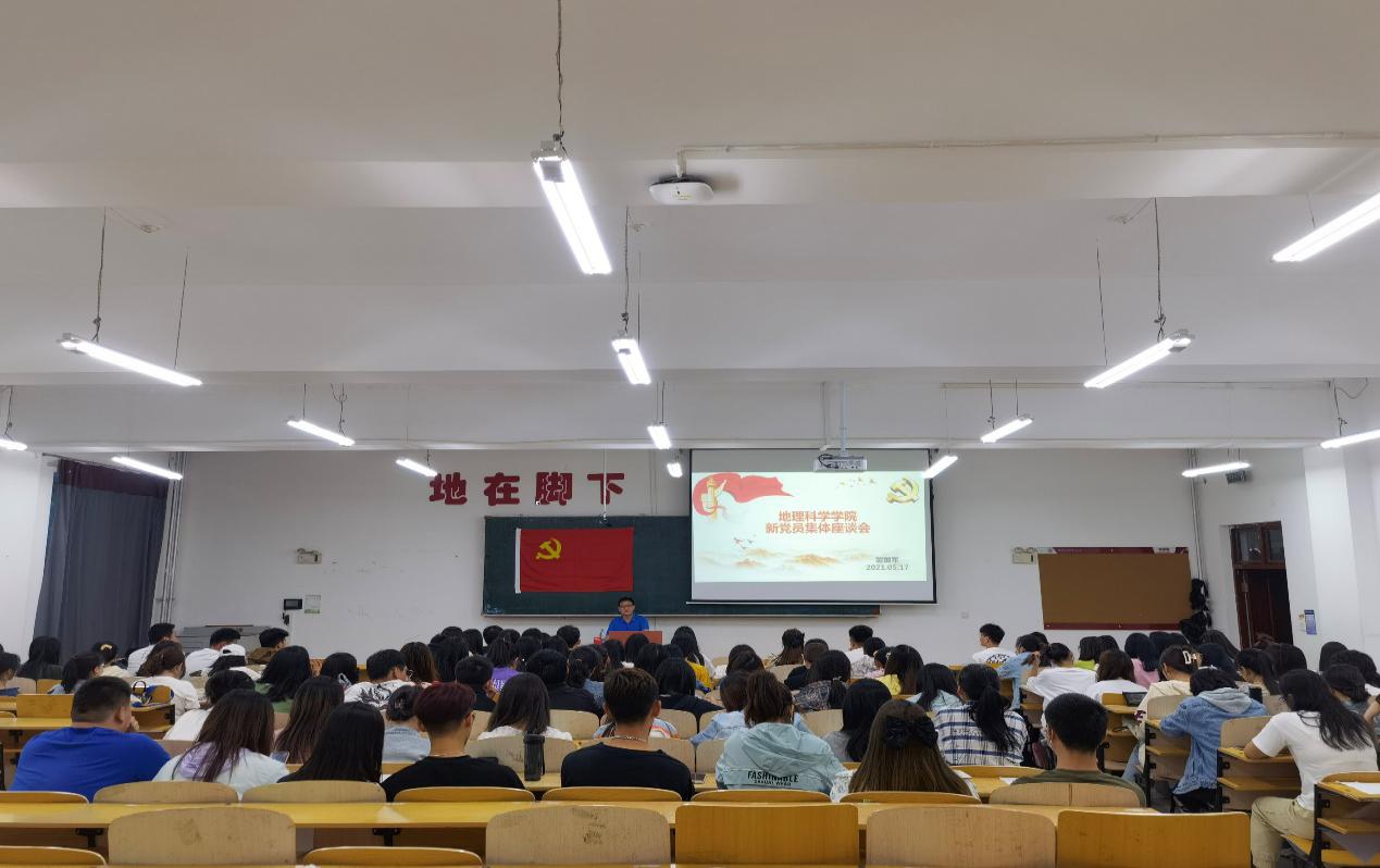为迎接建党100周年,深入贯彻习近平总书记在党史学习教育动员大会上的讲话精神,推动党史学习教育往深里走、往心里走、往实里走,进一步做到学史明理,学史增信,学史崇德,学史力行,加强新党员的自身党性修养,坚定理想信念。5月17日晚,地理科学学院党委于理工三号楼220室召开新党员集体座谈会。会议由学院党委书记蒙国军主持,2021年上半年新接收的第二批预备党员参会。