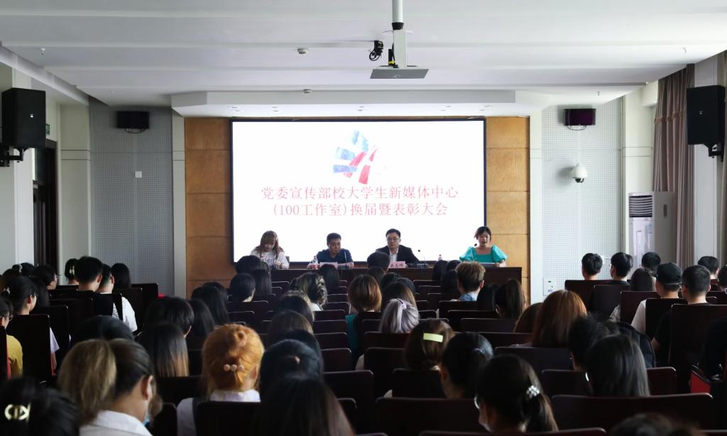 (李云华/文)6月9日下午,校党委宣传部大学生新媒体中心(100工作室)在行知楼746室举行换届暨表彰大会。党委宣传部副部长张建新、100工作室指导教师盛志伟以及部分工作室成员参加大会,会议由组长杨晓玉同学主持。