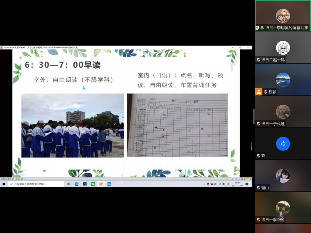 (铁颖/文)为进一步加强我校师范类专业学生职业技能,增强学生综合素质能力,提高师范生的教育教学水平,提升毕业生的就业竞争力。2021年11月29日我校东语学院召开了日语教育实习总结大会。东语学院领导、实习带队教师及2018级、2019级日语教育专业方向的全体学生出席了本次大会。日语教研室主任铁颖主持大会。