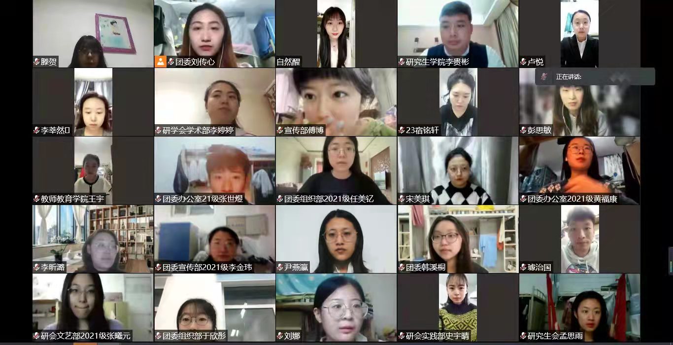 领学结束后,研究生代表赵丹宁、韩溪桐、王宇、宋美琪等7名同学立足研究生身份及自身专业做了学习交流发言,与会同学各抒己见,畅谈学习“两会”精神感悟,表达了坚决贯彻习近平总书记指示和“两会”精神,积极投身学习成长,努力为国家和社会作出更多的贡献。