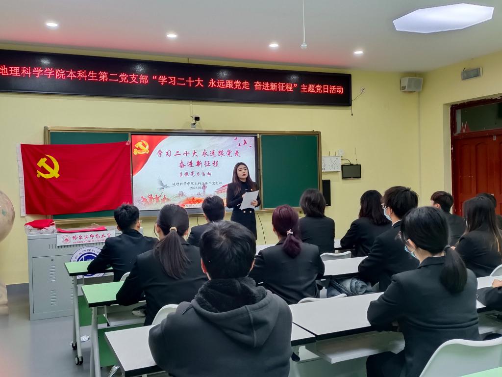 锦绣中华山河好,接续奋斗再扬帆。本次主题党日活动营造了学习党的二十大的良好氛围,地理科学学院各基层党支部将以饱满的政治热情,认真学习领会党的二十大精神,牢牢把握学生党建在育人工作中的重要抓手作用,引导广大学生党员将理论学习成果持续转化为提升党性修养、思想境界、道德水平的精神营养,踔厉奋发、勇毅前行,在民族复兴的伟大征程中激荡青春力量,在新时代浪潮中续写崭新奋斗篇章!