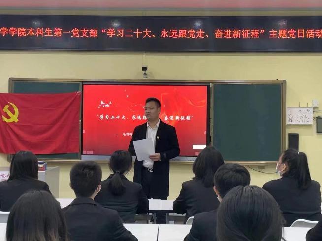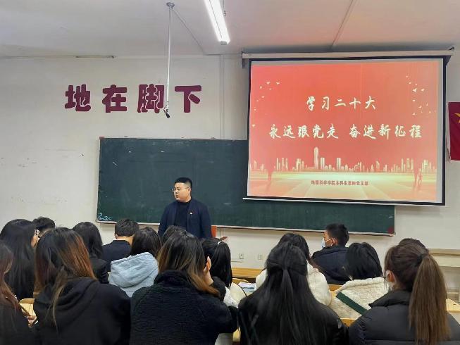 为深入学习贯彻党的二十大精神,进一步增强党组织的创造力、凝聚力,充分发挥党员的先锋模范作用,地理科学学院党委组织各学生党支部于2022年10月17日开展“学习二十大、永远跟党走、奋进新征程”主题党日活动。