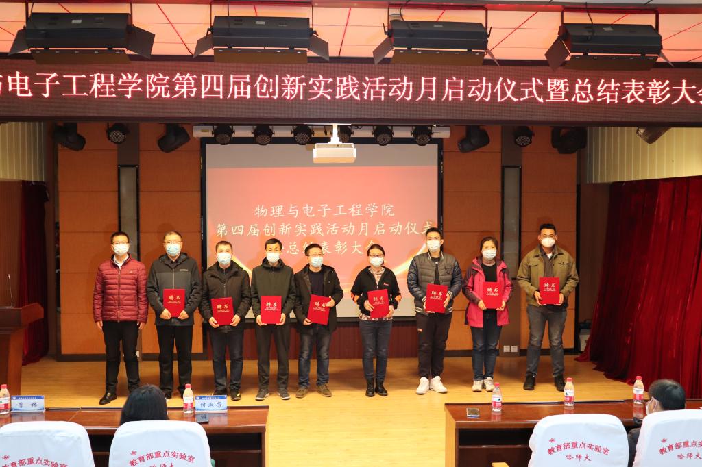 为进一步推动创新实践教育工作开展,激励学生踊跃参加创新实践活动,积极营造开放、创新的良好氛围,10月26日下午,物理与电子工程学院在科学会堂一楼报告厅举办第四届创新实践活动月启动仪式暨总结表彰大会。物理与电子工程学院党委书记邓铁男、院长李林、副院长付淑芳以及部分师生代表参加本次活动。本次活动由物理与电子工程学院党委副书记姜雪娥主持。