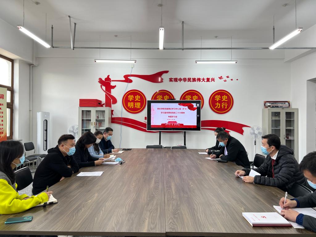 (左游/文)按照学校党委要求,11月15日下午,音乐学院召开党委理论学习中心组(扩大)学习宣传贯彻党的二十大精神专题学习会。学院班子成员、党委委员、交流发言人员在艺术大厦B区209会议室参会,全体教师党支部书记、学生党支部书记、三办主任、辅导员线上参会。会议由学院党委书记司红主持。