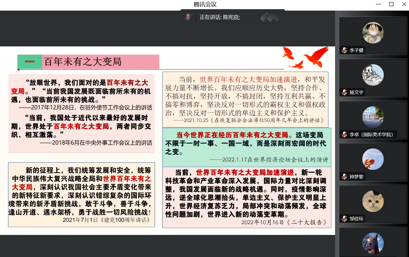 为深入学习贯彻党的二十大精神,切实用党的二十大精神统一思想、统一意志、统一行动,12月14日下午,国际美术学院党委和美术学院党委联合举行学习贯彻党的二十大精神线上宣讲报告会。会议邀请马克思主义学院博士生导师陈宪良教授作专题宣讲报告。国际美术学院和美术学院领导班子成员、各党支部书记、全体教师党员、学生党员参加报告会。会议由美术学院党委书记顾德光主持。