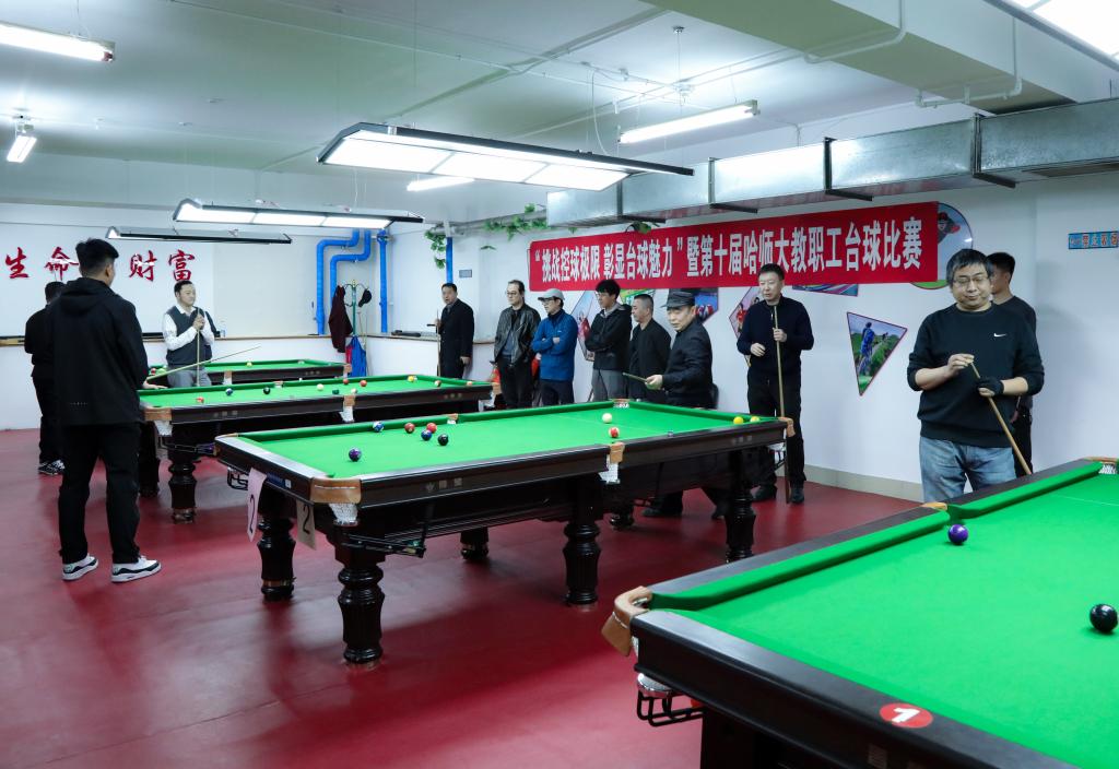 (赵慧宁/文)4月14日,我校台球爱好者们迎来了自己的十周年盛会。由校工会主办、教职工台球协会承办的“挑战控球极限,彰显台球魅力”暨第十届教职工台球赛,在我校松北校区教职工活动中心拉开序幕。工会常务副主席杨世君、全体参赛教职工及裁判员参加了开幕式。