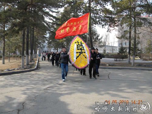 参与扫墓的全体人员穿戴整齐,胸戴白花,从校园出发,怀着对烈士无限崇敬的心情步行来到哈尔滨市革命烈士陵园。党员代表向烈士墓敬献花圈,全体人员向革命烈士三鞠躬,默哀一分钟,寄托大家对先烈的沉痛哀思。