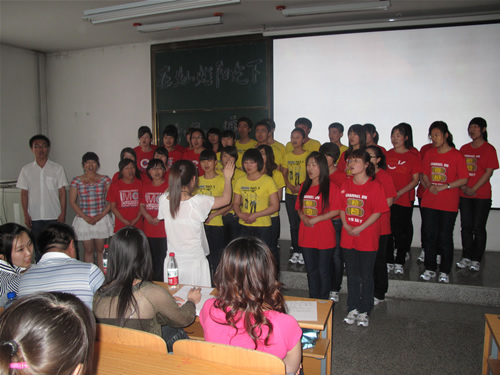 比赛过程中,各支队伍用饱含深情的歌声演唱了必选歌曲——《在灿烂阳光下》和各自精心准备的选唱歌曲。最后09级政教3班荣获此次合唱比赛的第一名。比赛在学生们热烈的掌声中圆满结束。此次大赛,不但唱出了青年大学生昂扬的斗志、唱出了对革命先烈的崇敬,而且彰显了集体的凝聚力以及对祖国、对人民的无限热忱与挚爱。