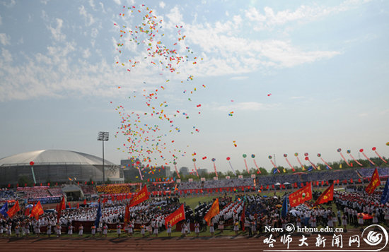 我校第五十二届田径运动会于6月3日7时30分在松北校区运动场隆重开幕。哈尔滨市副市长张显友、黑龙江省教育厅副厅长、黑龙江省体育局副局长张力军、哈尔滨市体育局副局级巡视员佘选新,我校党政领导以及离退休老领导出席了开幕式。开幕式由党委常委、副校长徐晓风主持。
