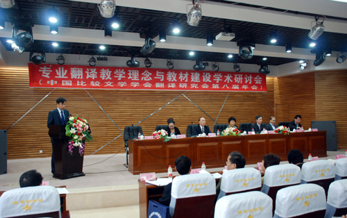 由全国MTI教育指导委员会、中国译协翻译理论与翻译教学委员会、中国比较文学学会翻译研究会主办,我校西语学院承办的专业翻译教学理念与教材建设学术研讨会暨中国比较文学学会翻译研究会第八届年会于9月24-27日在我校松北校区梦溪宾馆二楼报告厅举行。大会由我校西语学院院长姜涛教授主持