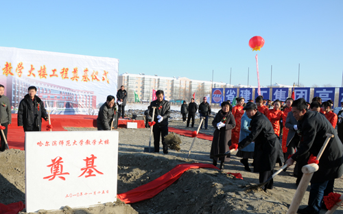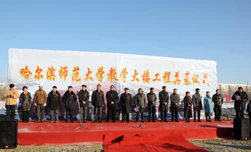 11月15日上午,为庆祝我校新建教学大楼项目顺利开工,学校在施工现场组织举行了隆重的奠基仪式。党委书记张少杰,党委副书记、校长王选章,党委副书记王为正,党委副书记王广明,党委常委、副校长李凤飞,党委常委、副校长王玉兰,党委常委、副校长曹百瑛,党委常委、副校长徐晓风,副校长臧淑英,党委常委、纪委书记蒋晶洁,工会主席张国昭,总务长马明及相关部门同志出席奠基仪式。市呼兰区委副书记、区长刘志军,利民经济技术开发区党工委副书记郭宏伟,利民经济技术开发区建设局局长魏希彪,省建设集团总经理张起翔,省建工集团执行总裁于彩峰等出席奠基仪式。党委常委,副校长曹百瑛主持奠基仪式。